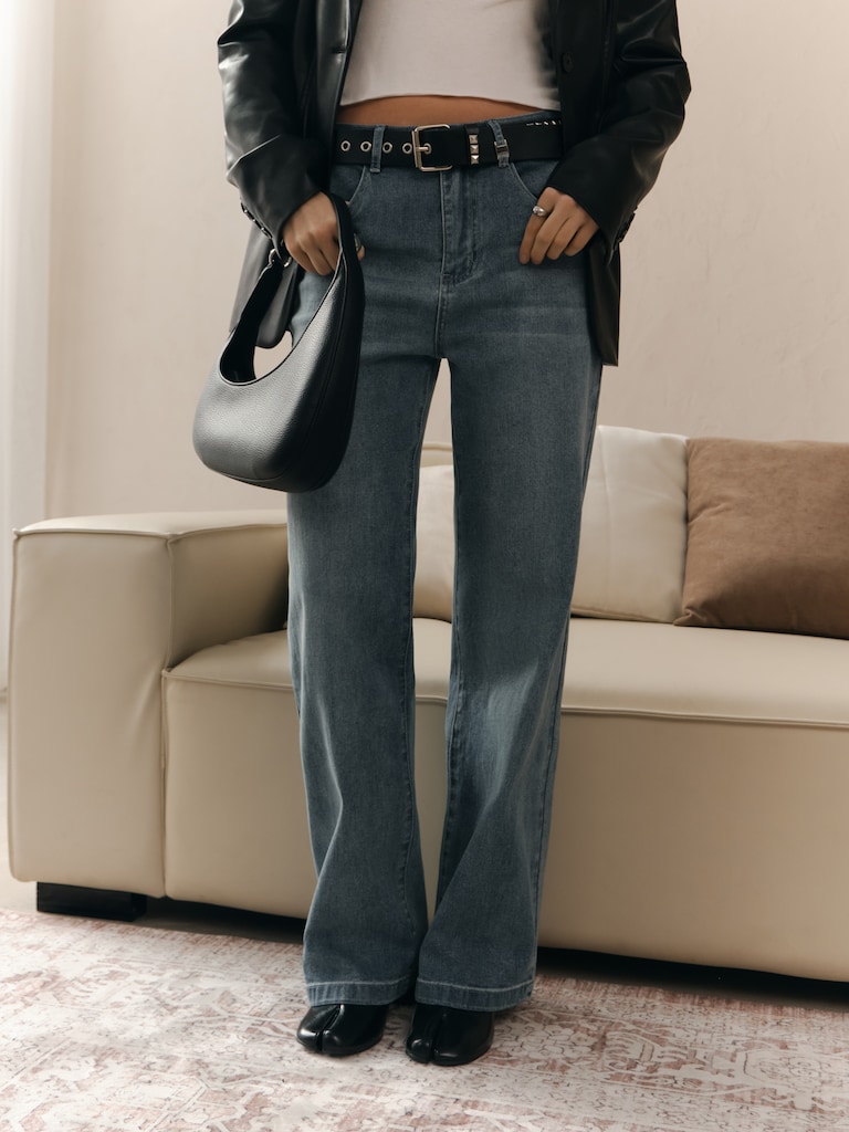 Прямые синие джинсы