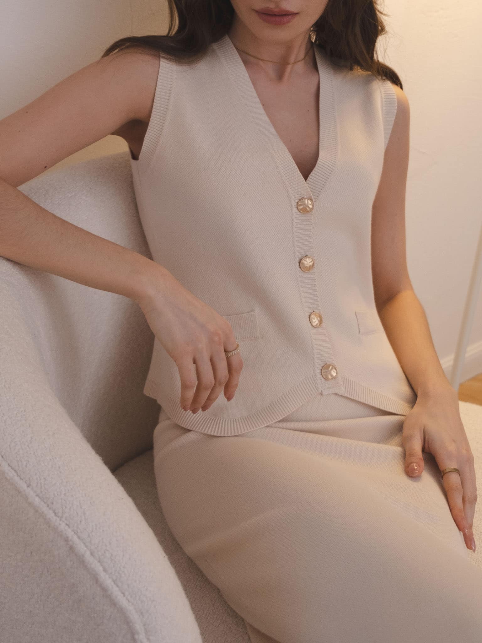 Жилет из вязаного трикотажа с крупными пуговицами :: LICHI