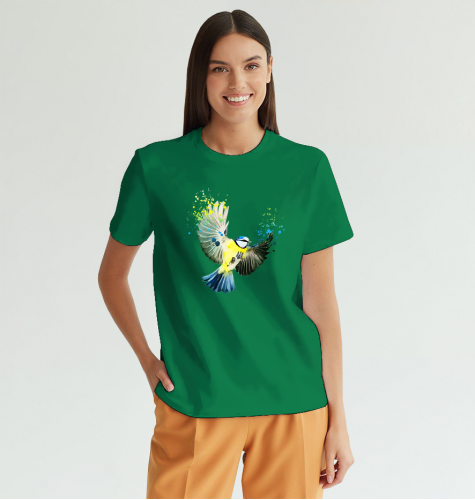 Жіноча футболка патріотична з принтом Українська Синиця XL яскраво